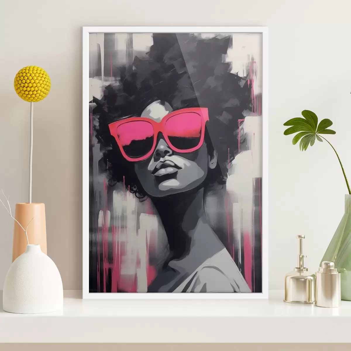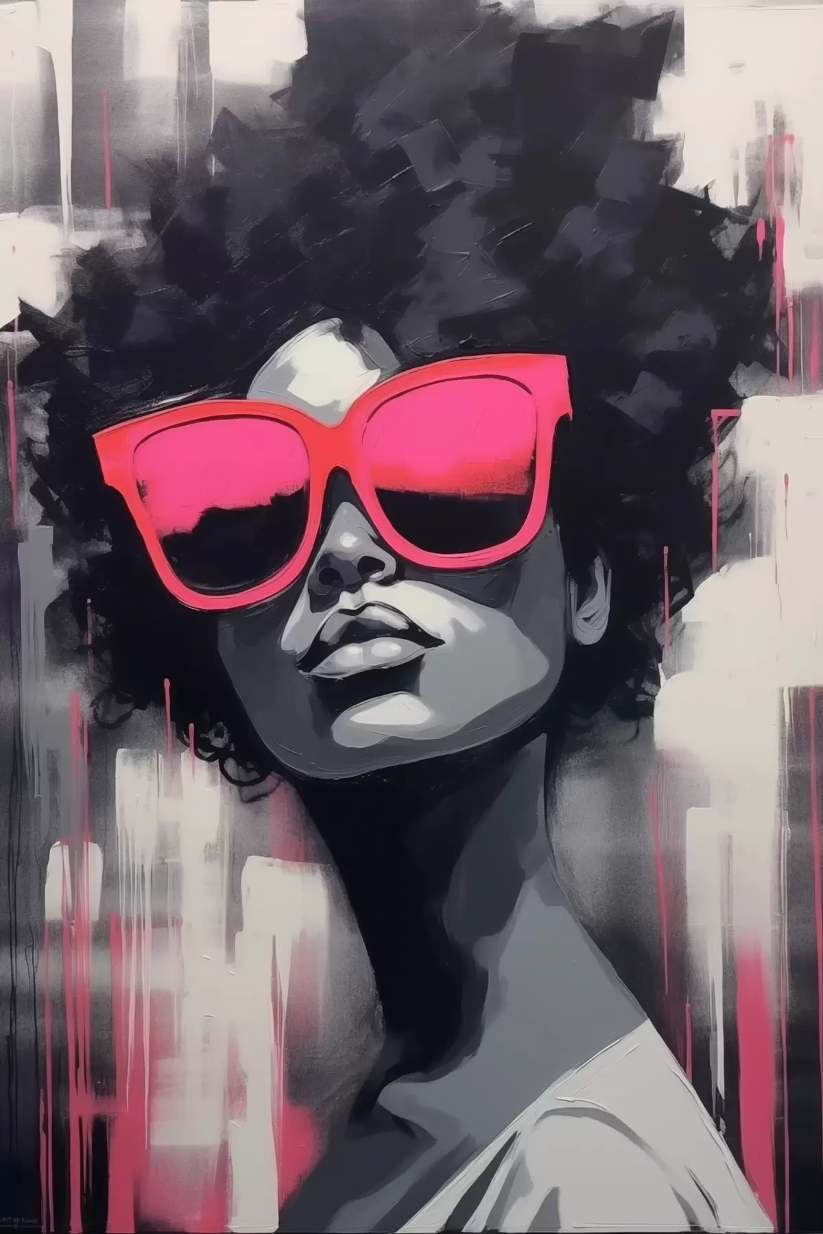 Poster Fată cu ochelari roz, stil alb-negru f44624