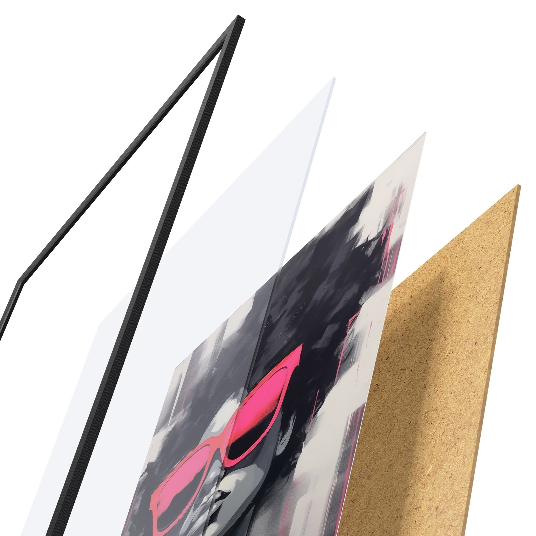Afișul constă dintr-o ramă, plexiglas, imagine imprimată și suport din PAL. Posterul poate fi agățat imediat pe perete datorită suporturilor de pe spate.