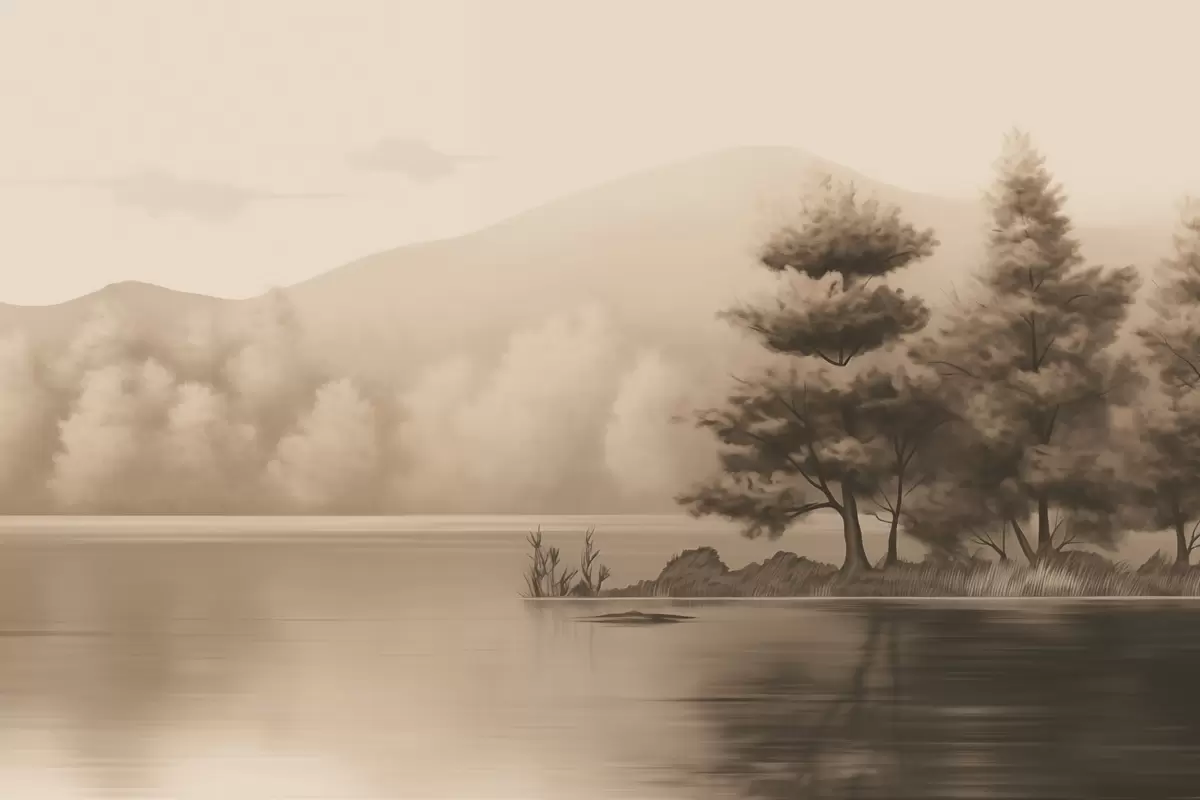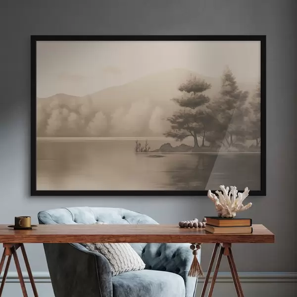 Poster Lac și copaci în sepia Nr f44633