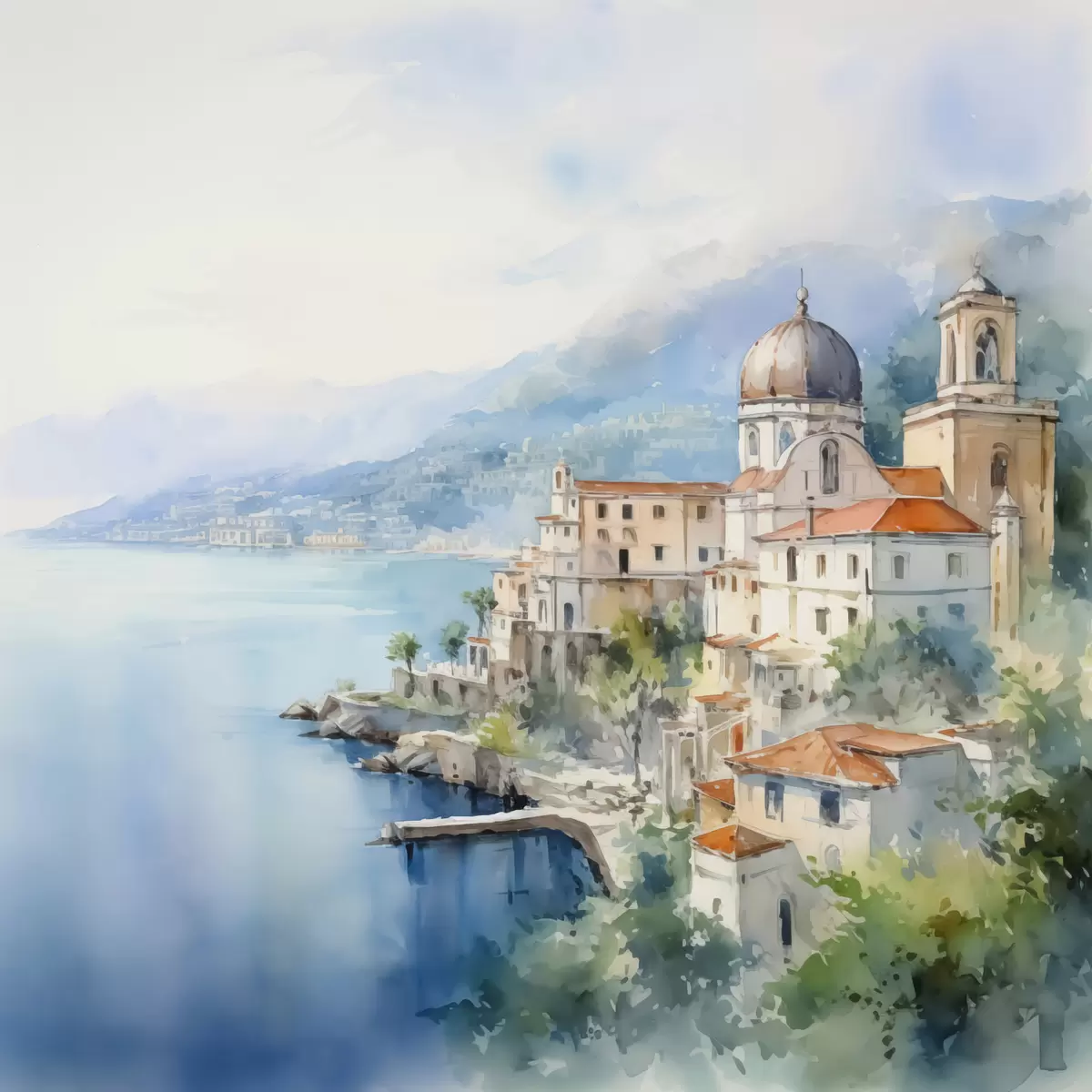 Poster Orașul de mare imitație de acuarelă Nr f44635