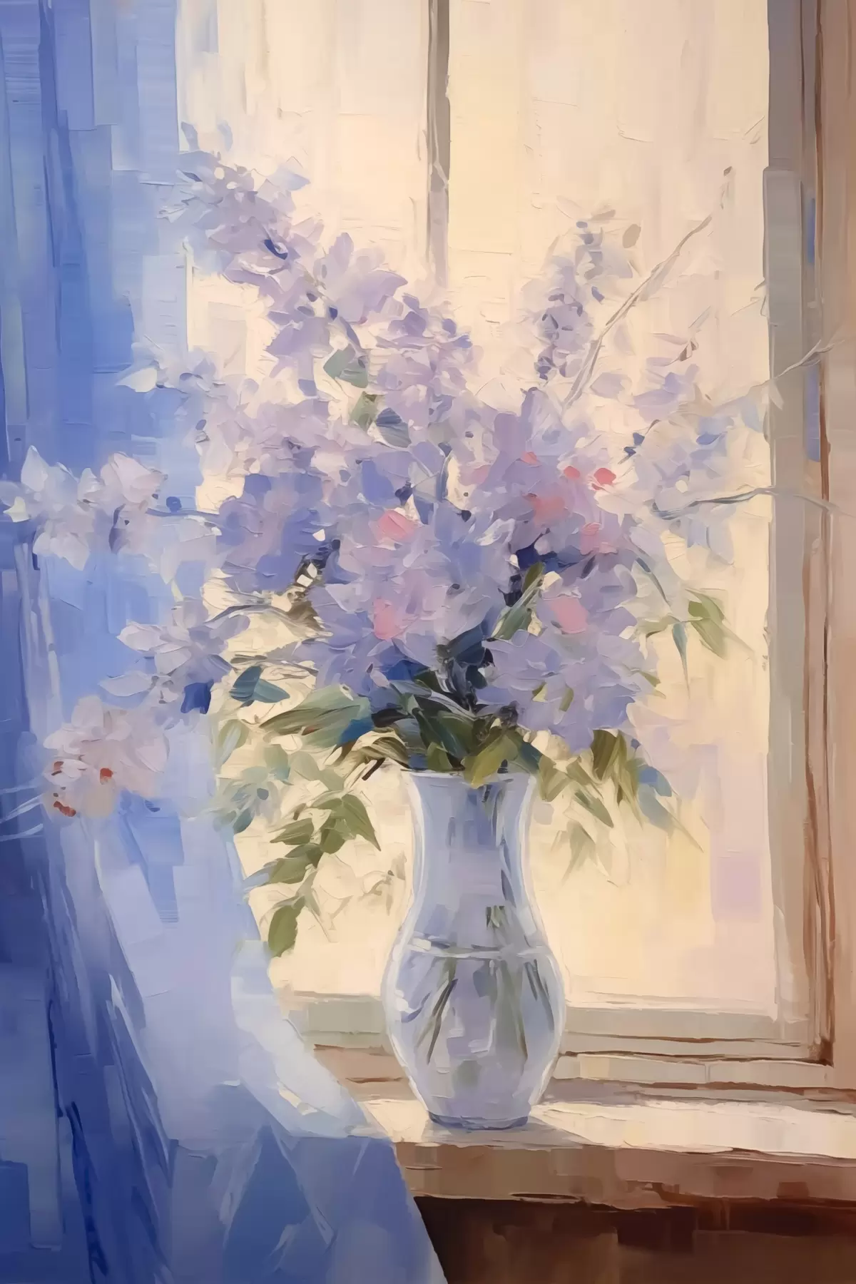 Poster Flori delicate într-o vază lângă fereastră Nr f44653