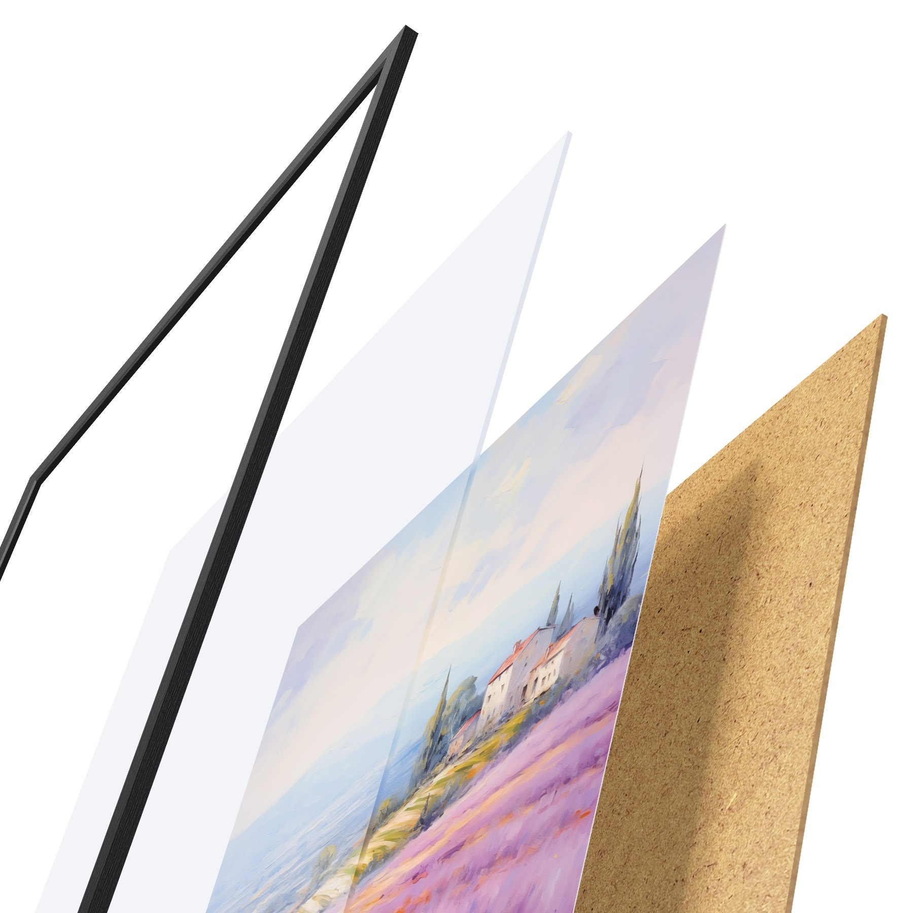 Afișul constă dintr-o ramă, plexiglas, imagine imprimată și suport din PAL. Posterul poate fi agățat imediat pe perete datorită suporturilor de pe spate.