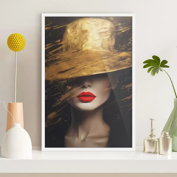 Poster Față de femeie cu ruj roșu sub pălărie largă Nr f44691
