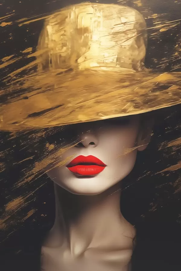 Poster Față de femeie cu ruj roșu sub pălărie largă Nr f44691