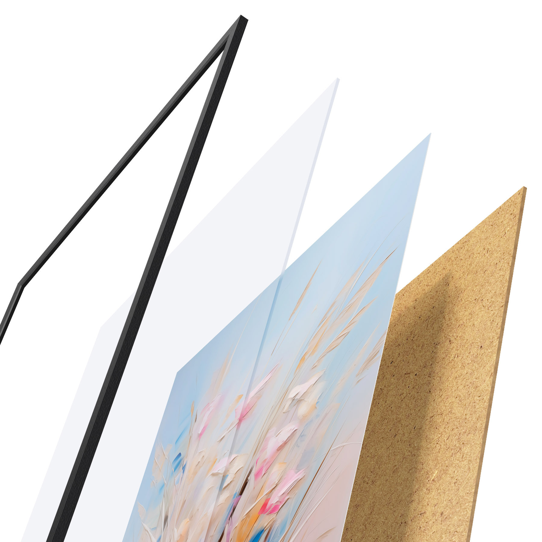 Afișul constă dintr-o ramă, plexiglas, imagine imprimată și suport din PAL. Posterul poate fi agățat imediat pe perete datorită suporturilor de pe spate.