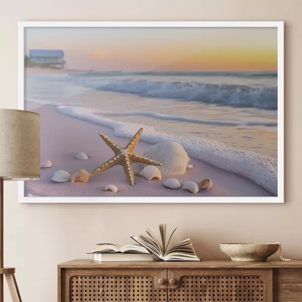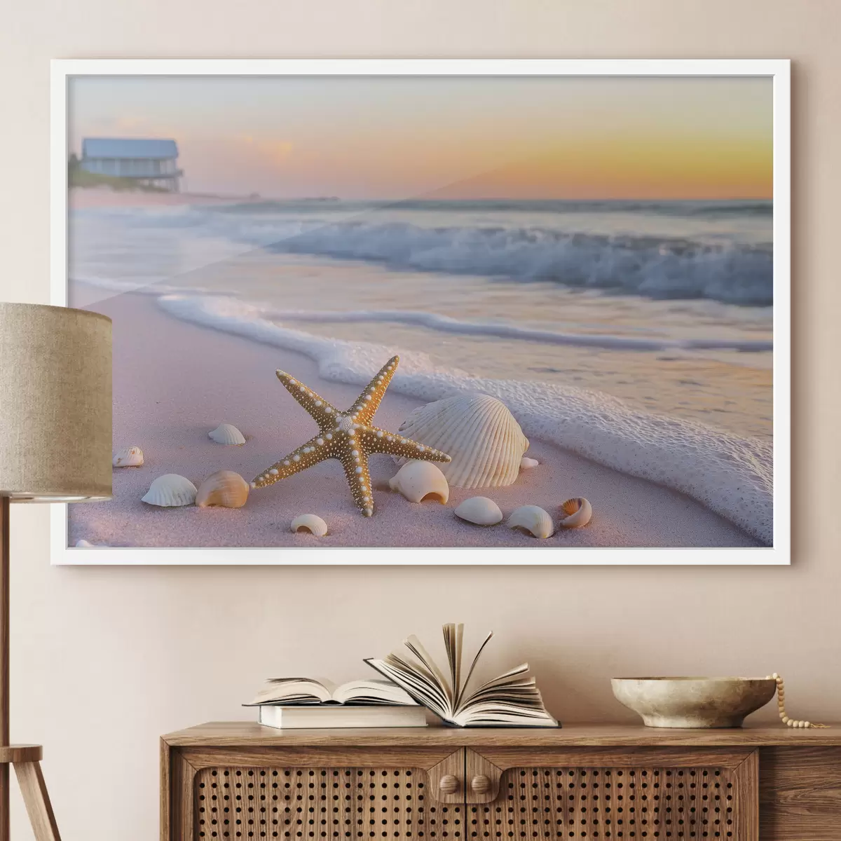 Poster Coastă de mare cu stele de mare, scoici și valuri Nr f44714