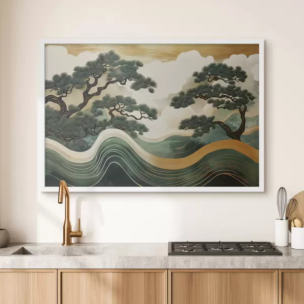 Poster Peisaje abstracte cu pini, stil chinezesc f44720