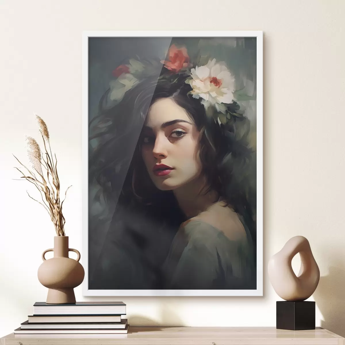 Poster Femeie cu părul negru cu o coroană de flori f44762