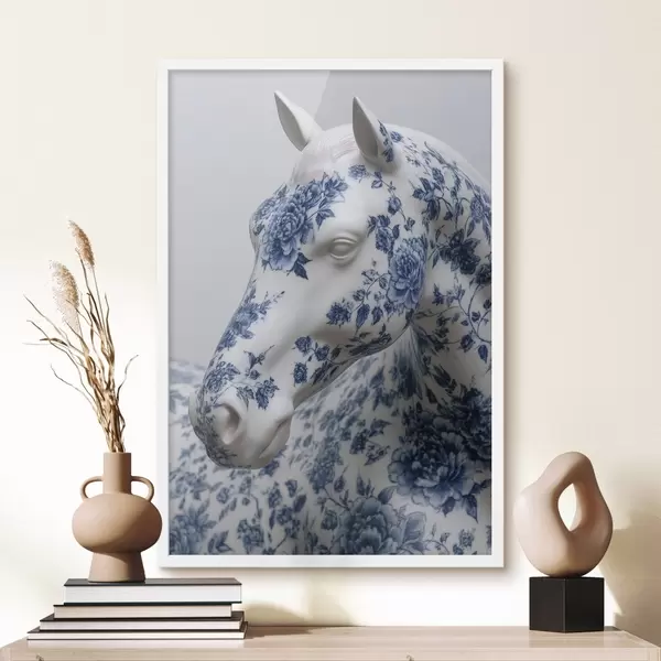 Poster Cal de porțelan cu imprimare de flori albastre Nr f44789