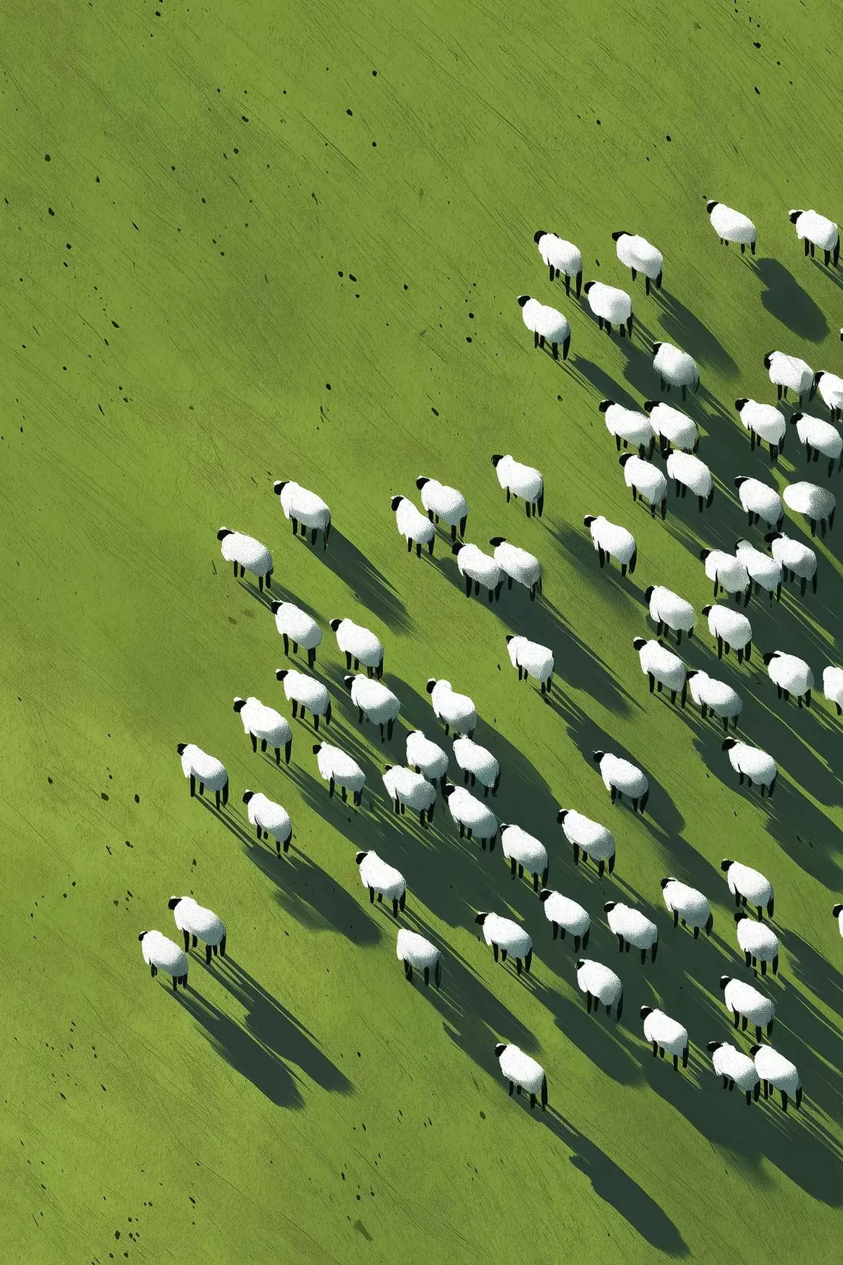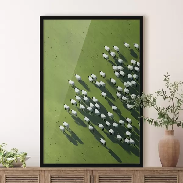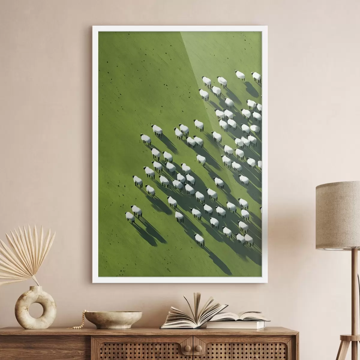 Poster Câmp verde cu o turmă de oi, abstracție, vedere aeriană Nr f44793