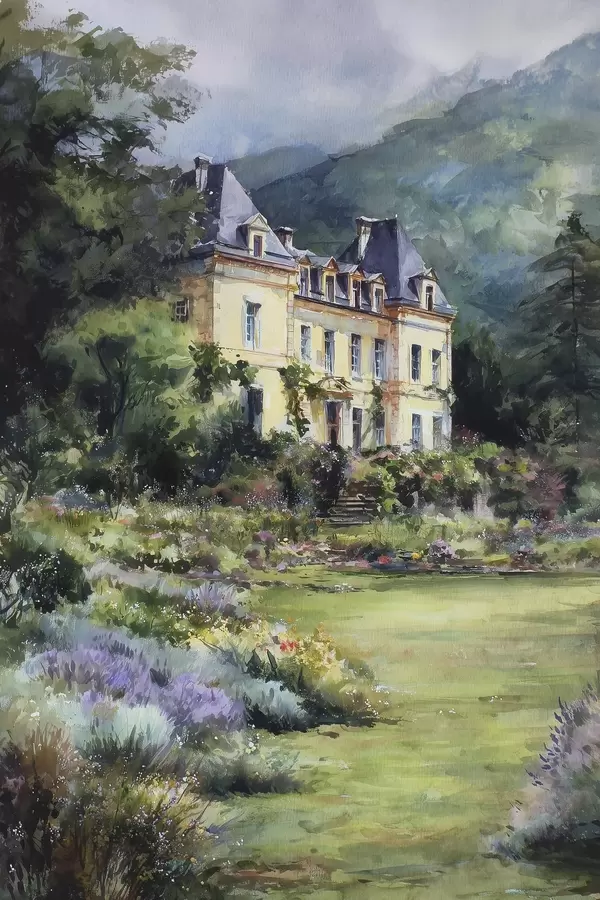 Poster Chateau francez înconjurat de o grădină cu lavandă Nr f44797