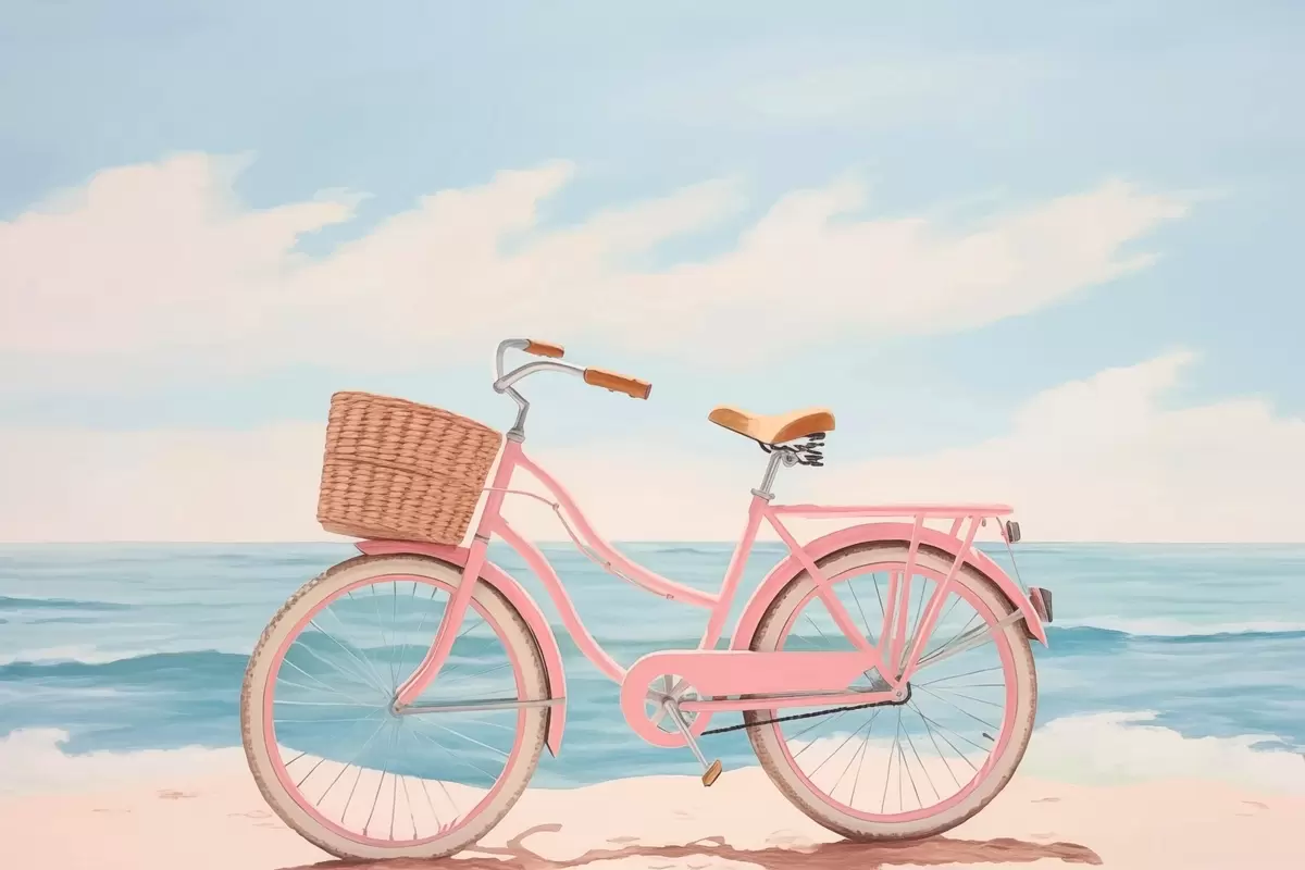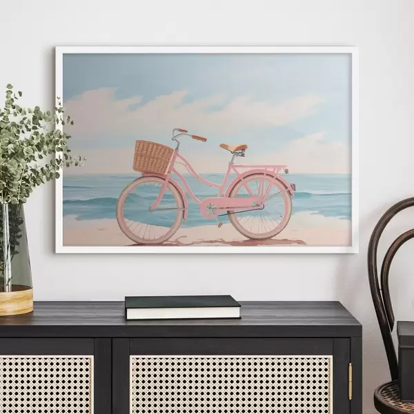 Poster Bicicletă roz pe plajă Nr f44808