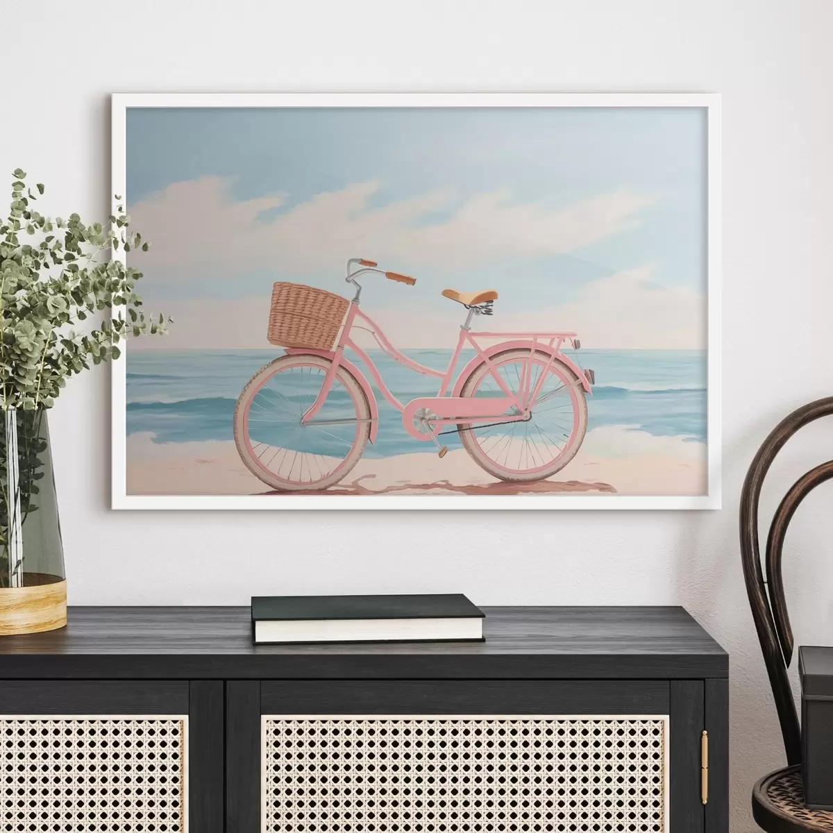 Poster Bicicletă roz pe plajă f44808