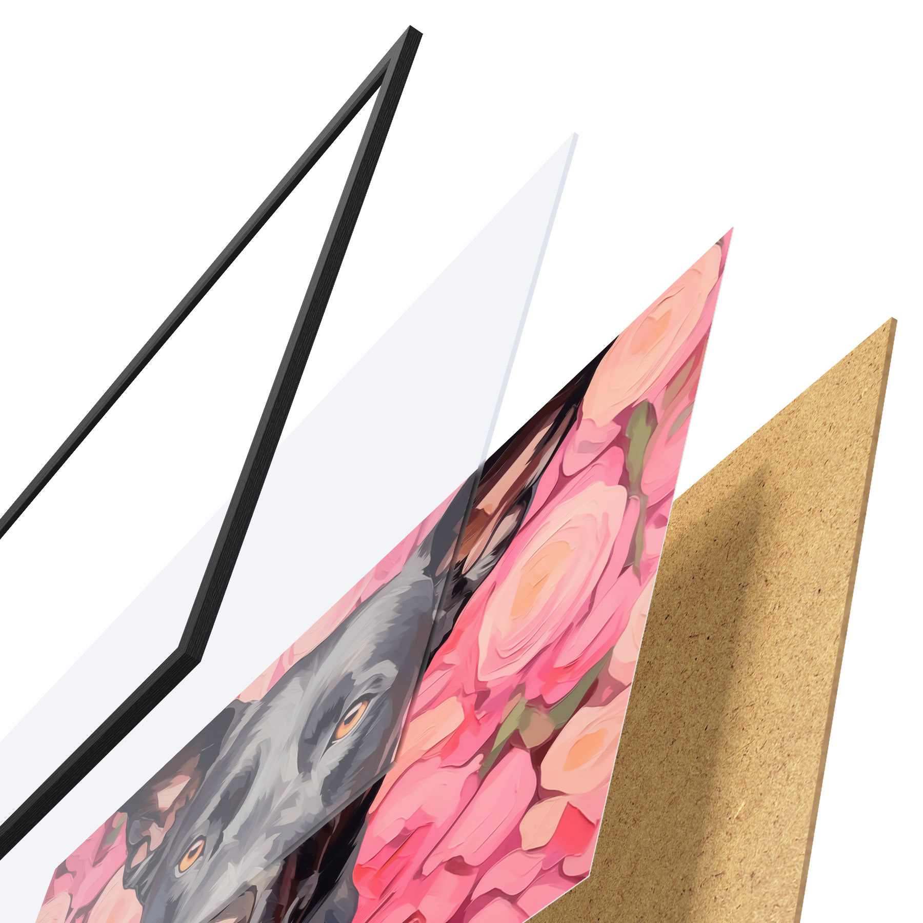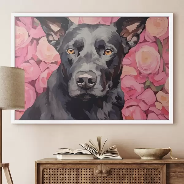 Poster Câine negru pe fundal abstract trandafiri Nr f44817
