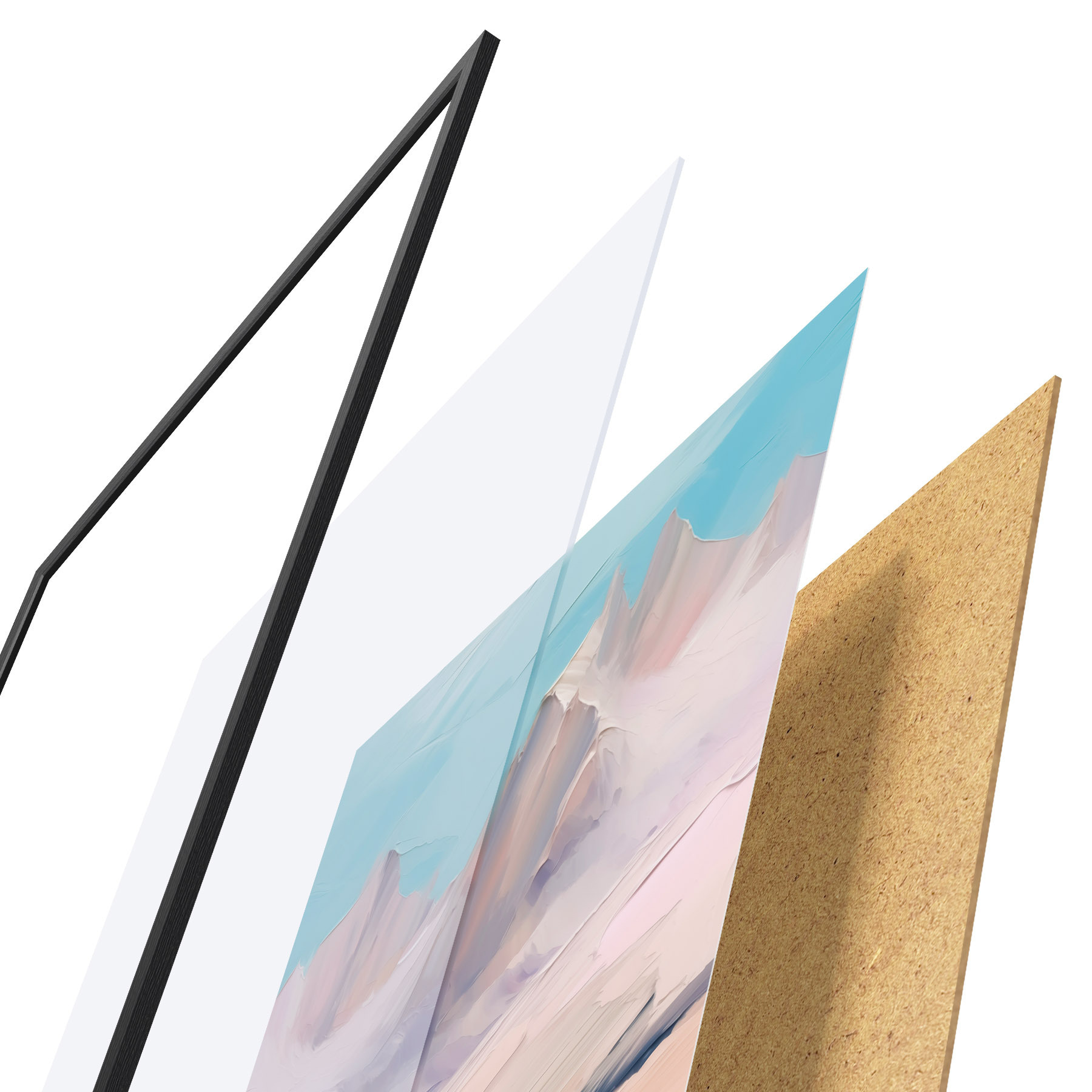 Afișul constă dintr-o ramă, plexiglas, imagine imprimată și suport din PAL. Posterul poate fi agățat imediat pe perete datorită suporturilor de pe spate.