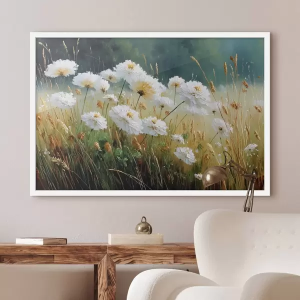 Poster Flori albe într-o pajiște în stil ulei f44842