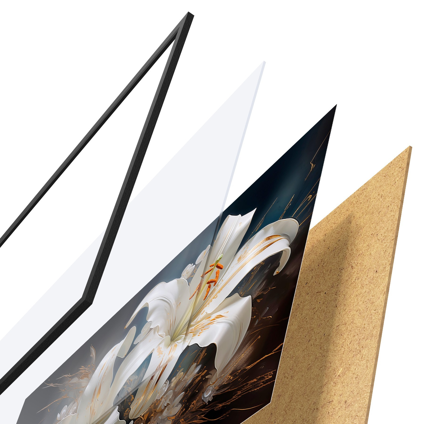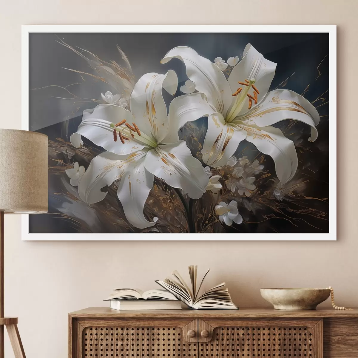 Poster Flori de crin pe un fundal întunecat cu elemente decorative f44848