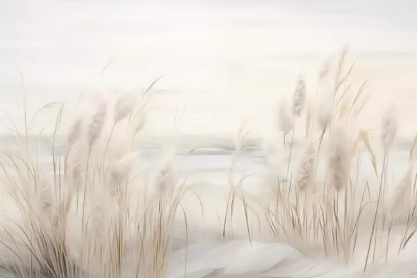 Poster Reed bej în prim-plan, cu capete de semințe, moale și delicat , un fundal neclar și un cer deschis Nr f44851