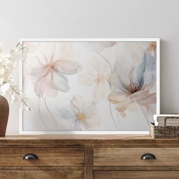 Poster Flori translucide texturate în culori pastelate, petale delicate, linii delicate pe un fundal alb Nr f44855