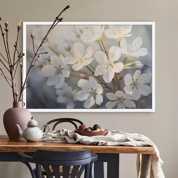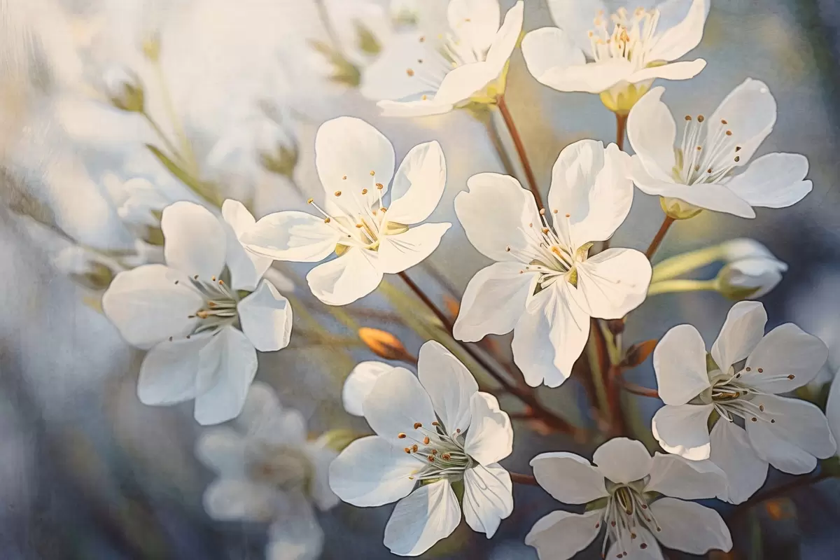 Poster Flori de cireș cu textură albă în stil acuarelă, petale delicate, sezonul de primăvară Nr f44859
