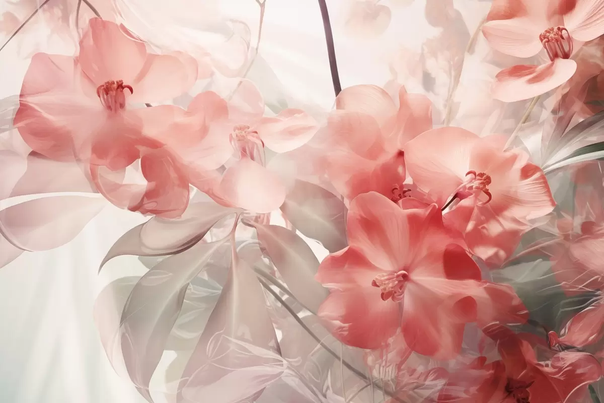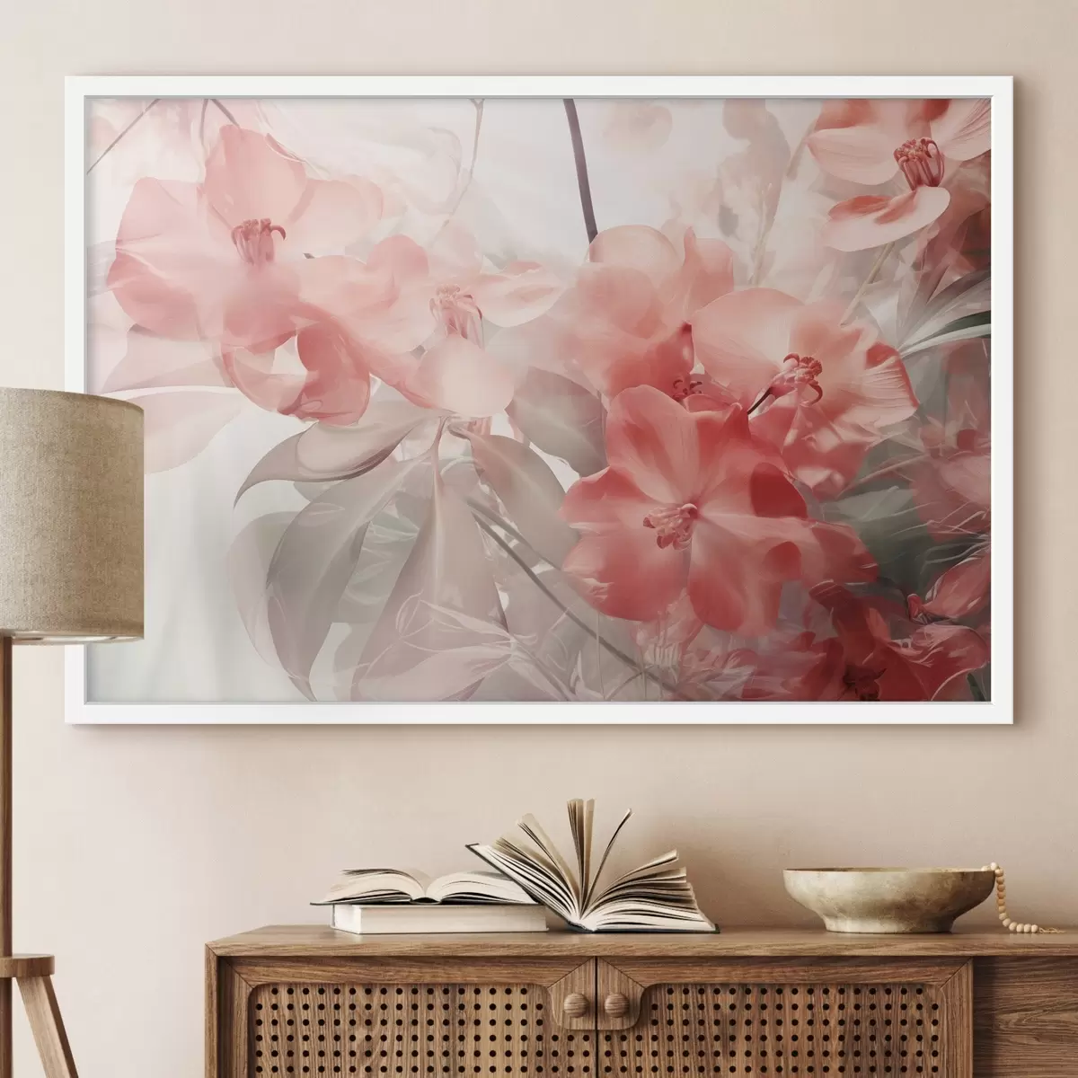 Poster Flori tropicale roz vibrante cu frunze verzi moi, creând o textură delicată de vis Nr f44861