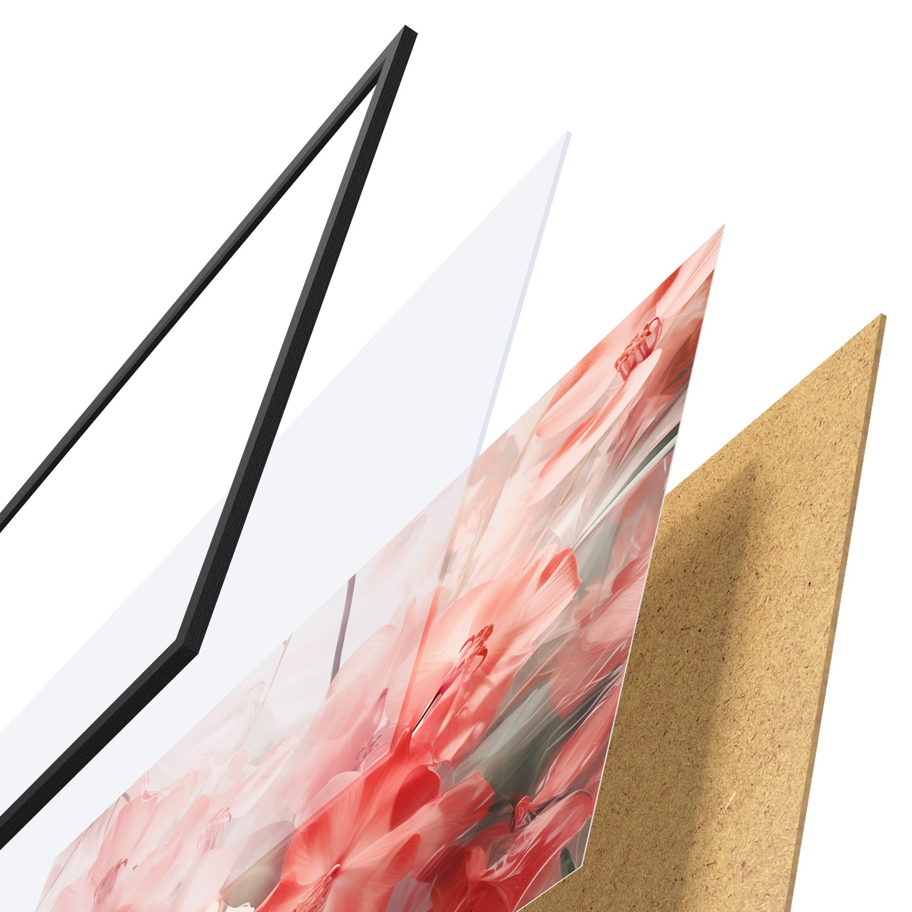 Poster Flori tropicale roz vibrante cu frunze verzi moi, creând o textură delicată de vis f44861