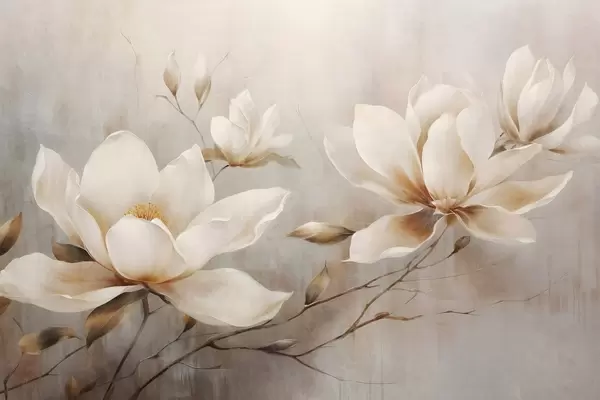 Poster Flori de magnolie albe de epocă texturate pe ramuri pe un fundal maro deschis Nr f44869