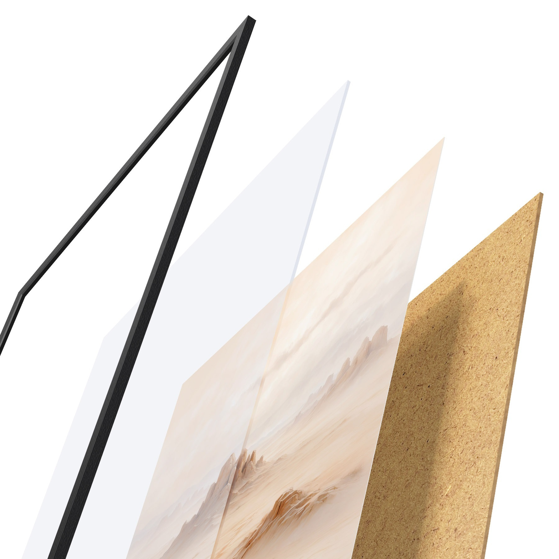Afișul constă dintr-o ramă, plexiglas, imagine imprimată și suport din PAL. Posterul poate fi agățat imediat pe perete datorită suporturilor de pe spate.