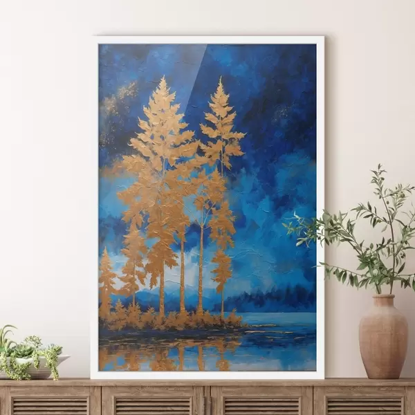 Poster Copaci pe fundalul cerului de noapte în tonuri albastre f44888