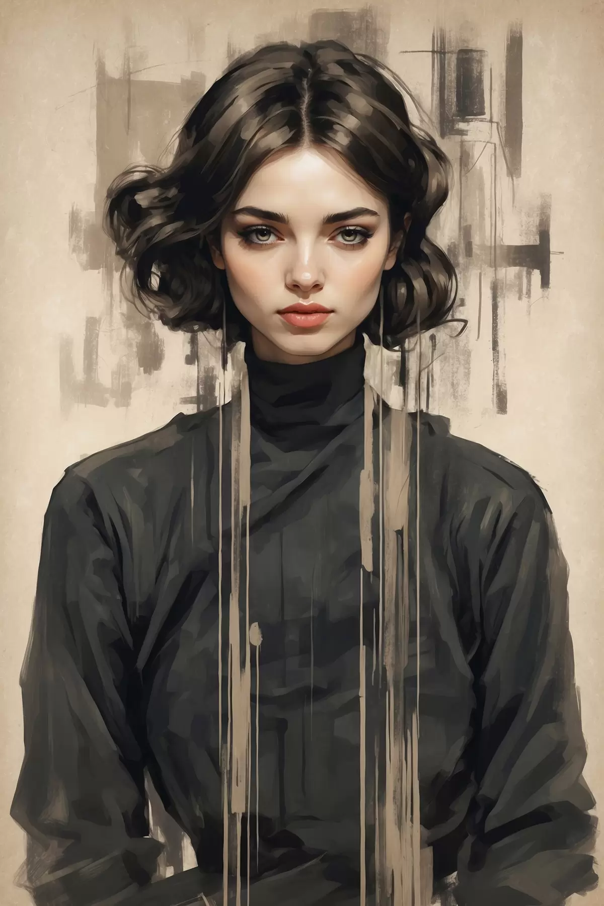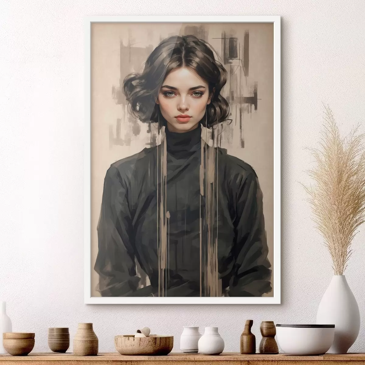 Poster Portret de femeie cu păr negru scurt pe fundal abstract Nr f44890