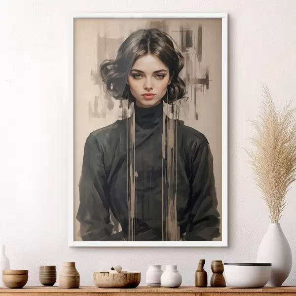 Poster Portret de femeie cu păr negru scurt pe fundal abstract f44890