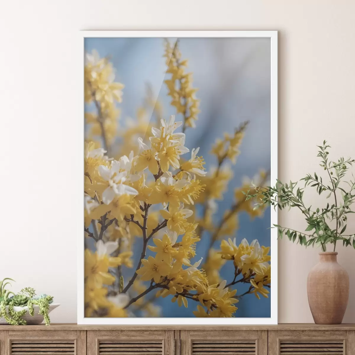 Poster Flori galbene pe un fundal albastru cu focalizare moale Nr f44894