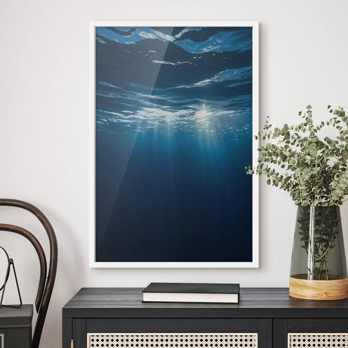 Poster Raze de lumină sub apă în adâncul oceanului albastru Nr f44897