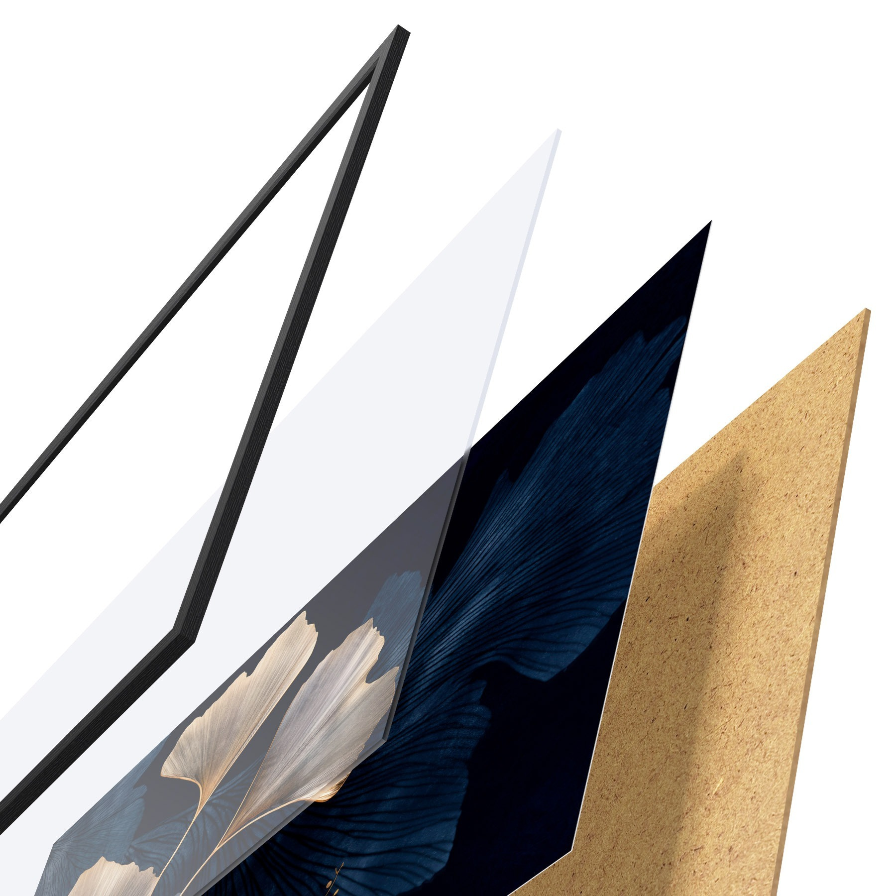Poster Frunze Ginkgo în tonuri de galben și albastru, fundal întunecat elegant, artă modernă, stil minimalist, inspirat din natură f44921
