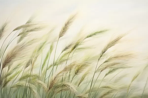 Poster Câmp de grâu cu spice de grâu galbene și verzi, tușe moi și o paletă de culori deschise, atmosferă naturală Nr f44923