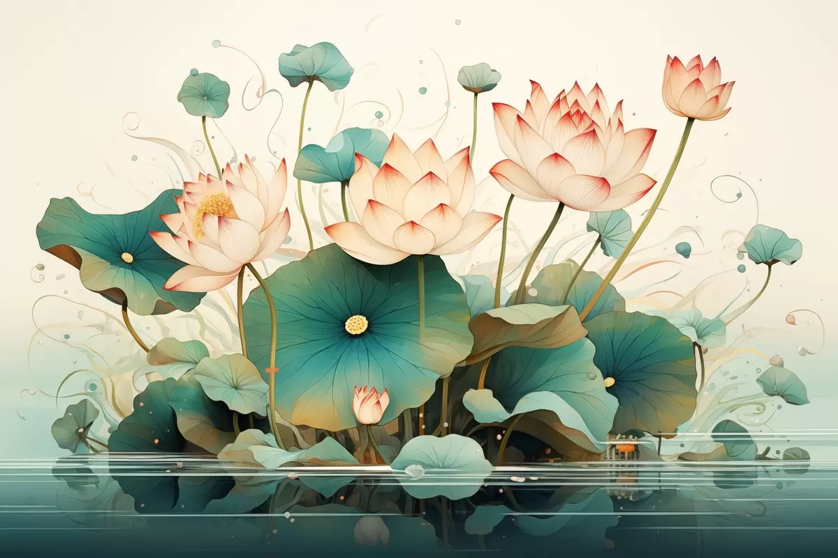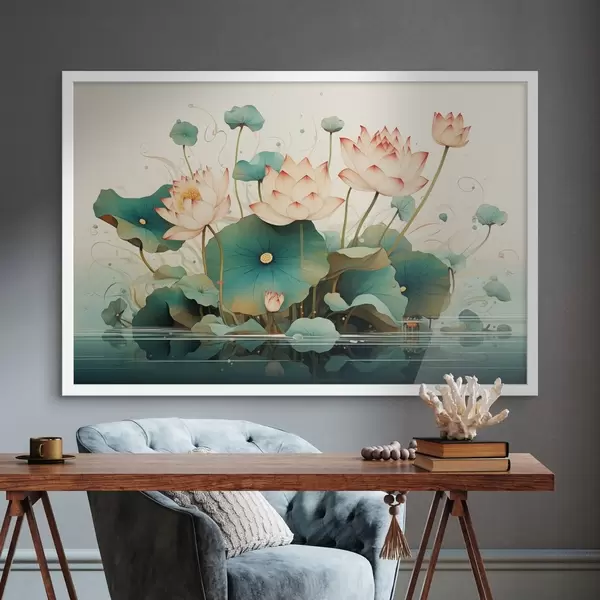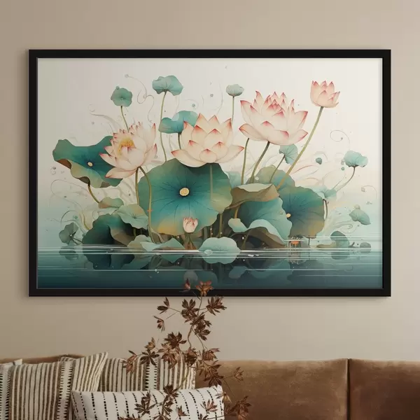 Poster Lotus cu frunze mari în stil ilustrație Nr f44939