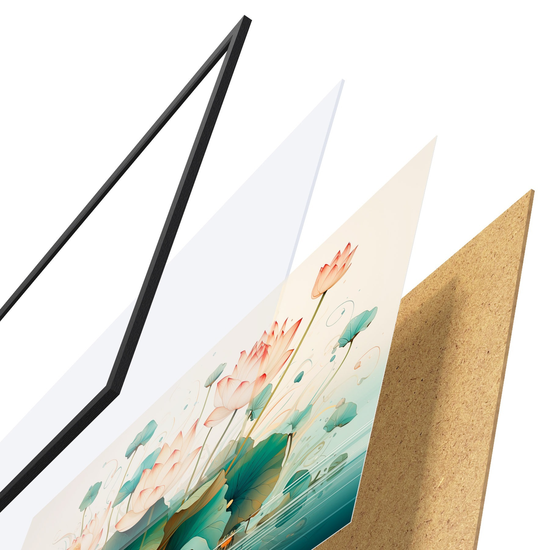 Poster Lotus cu frunze mari în stil ilustrație f44939