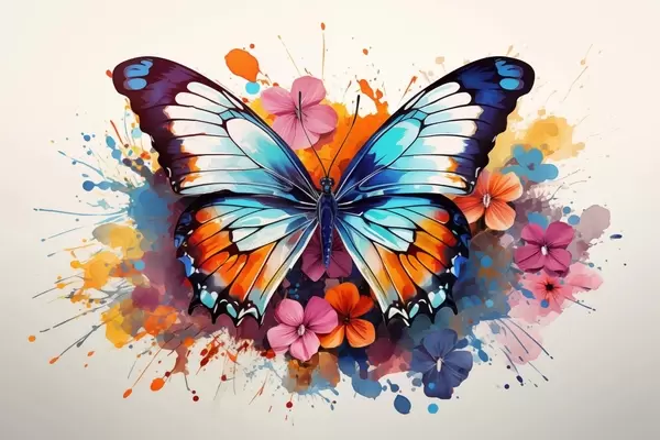 Poster Compoziție dinamică a unui fluture și pete florale în stil artistic Nr f44943