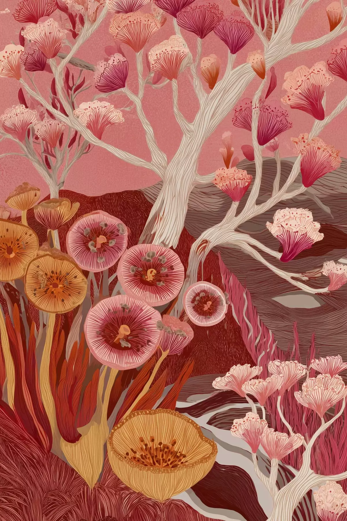 Poster Flori de epocă, artă geometrică, desen în stil acrilic f44976