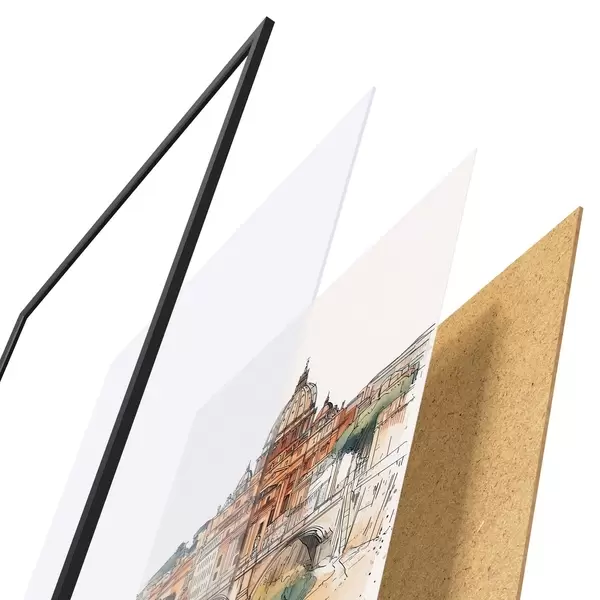 Afișul constă dintr-o ramă, plexiglas, imagine imprimată și suport din PAL. Posterul poate fi agățat imediat pe perete datorită suporturilor de pe spate.