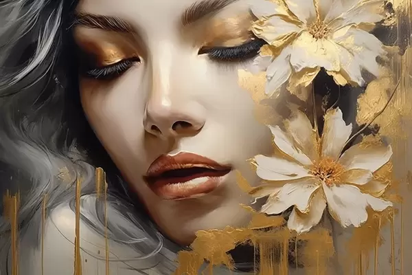Poster Portret de femeie cu flori Nr f45002