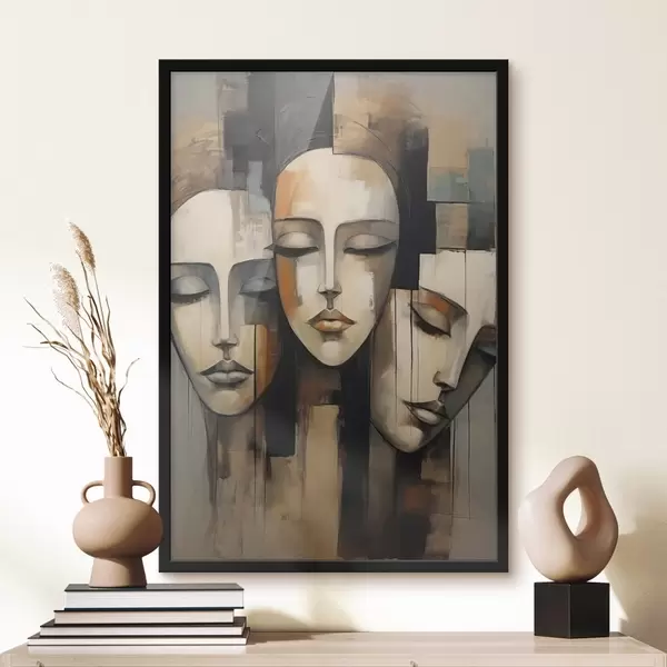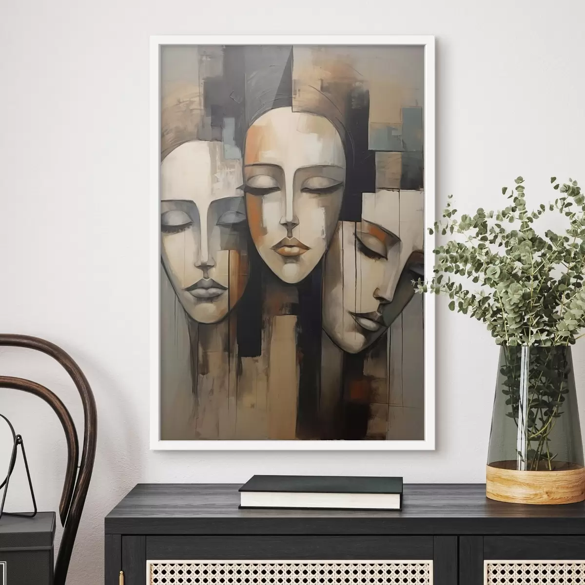 Poster Trei fețe feminine cu ochii închiși în stil cubist Nr f45008