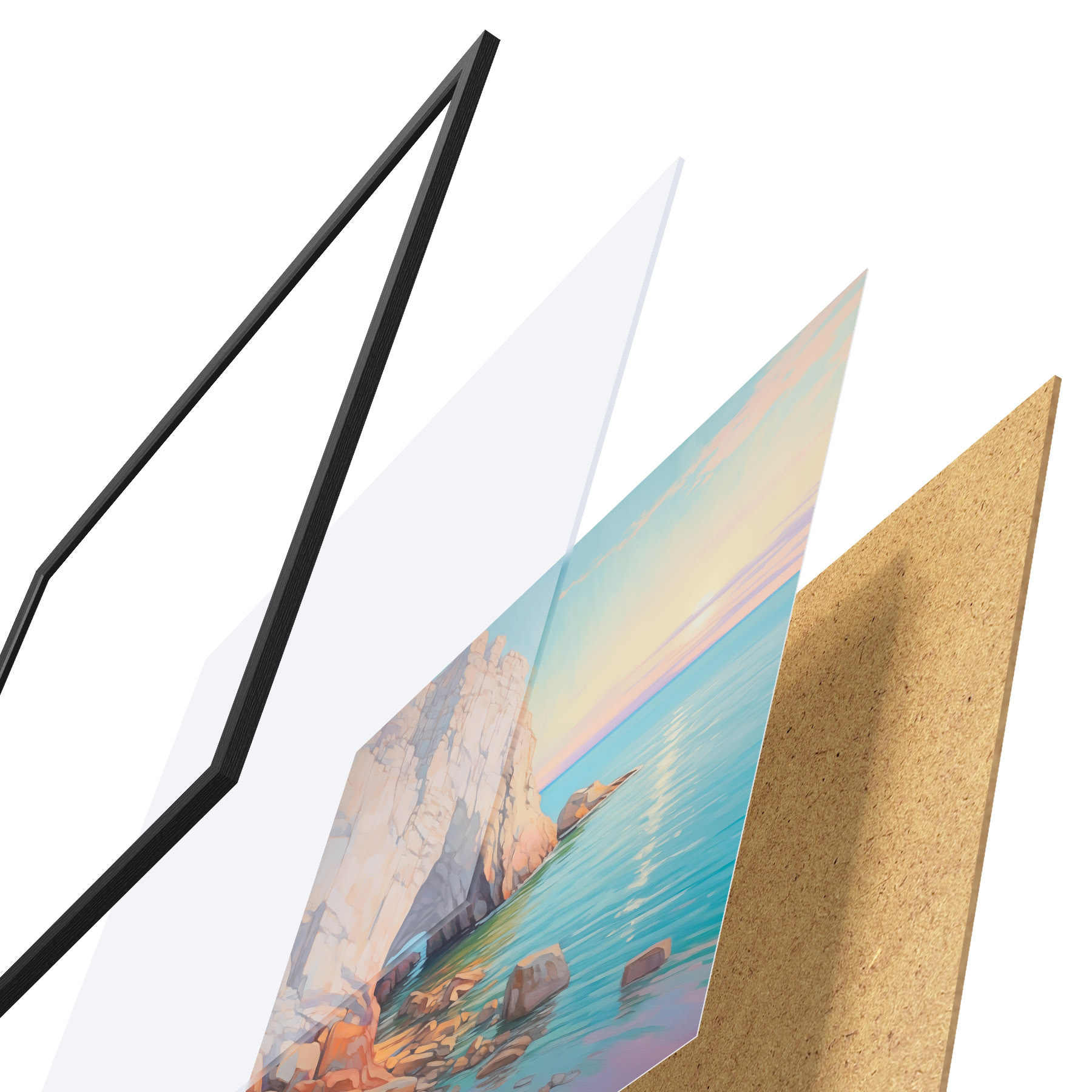 Afișul constă dintr-o ramă, plexiglas, imagine imprimată și suport din PAL. Posterul poate fi agățat imediat pe perete datorită suporturilor de pe spate.