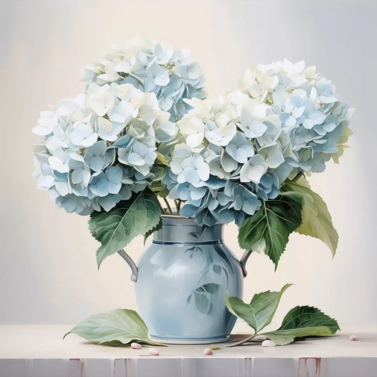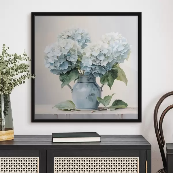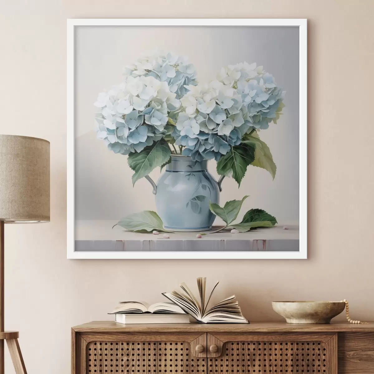 Poster Hortensii proaspete într-o vază albastră pe un fundal deschis Nr f45043