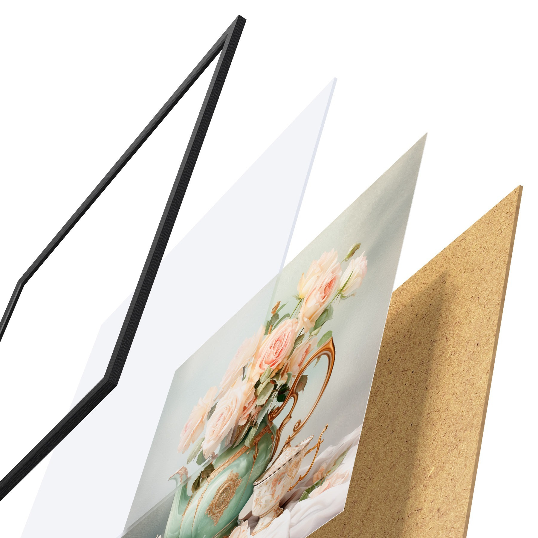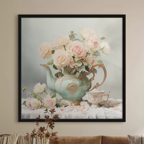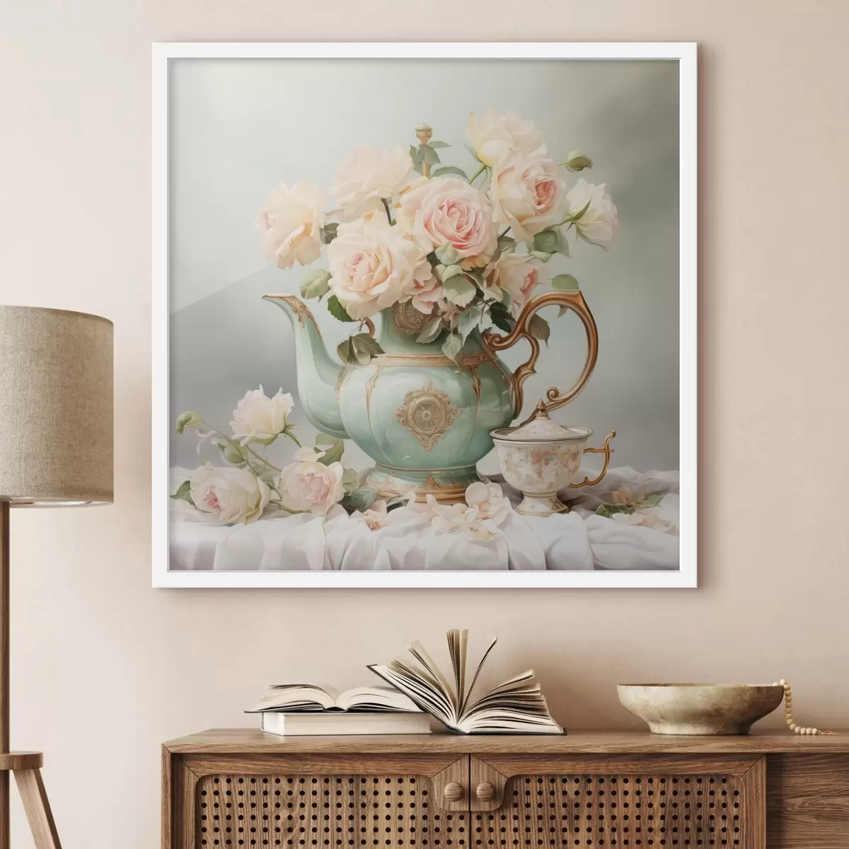 Poster Natură statică cu trandafiri delicați într-un set de ceai Nr f45045