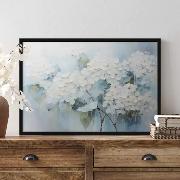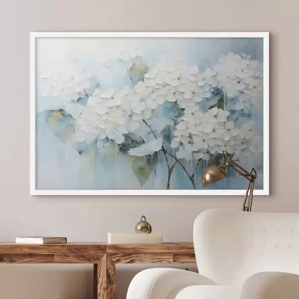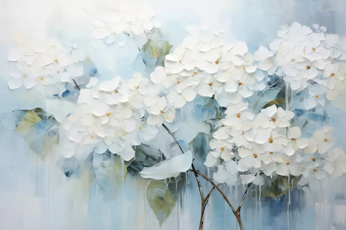Poster Hortensii albe înfloritoare în stilul picturii în ulei Nr f45051