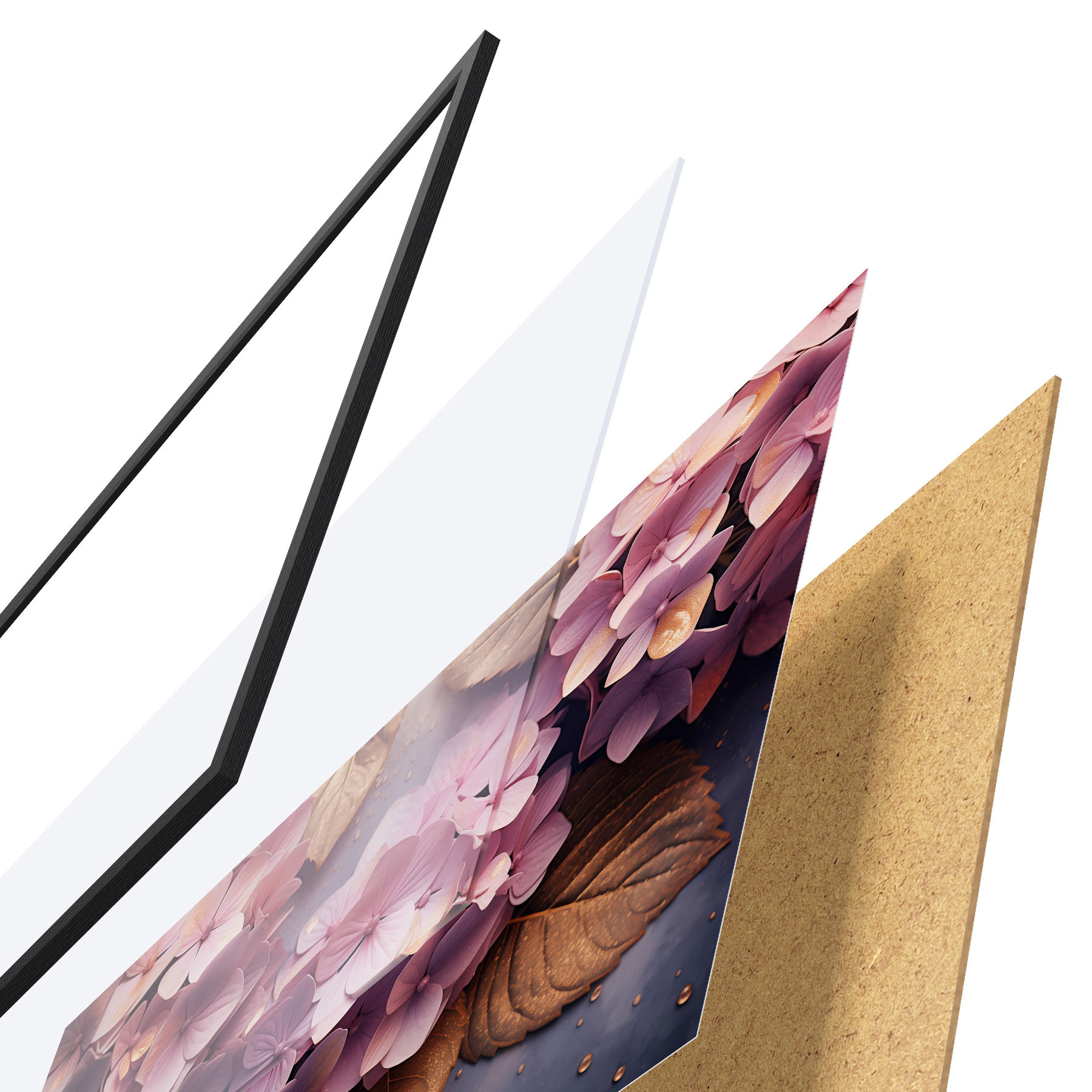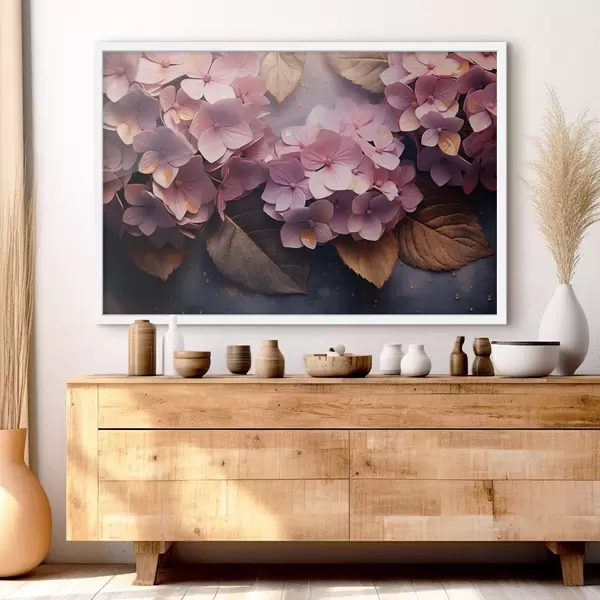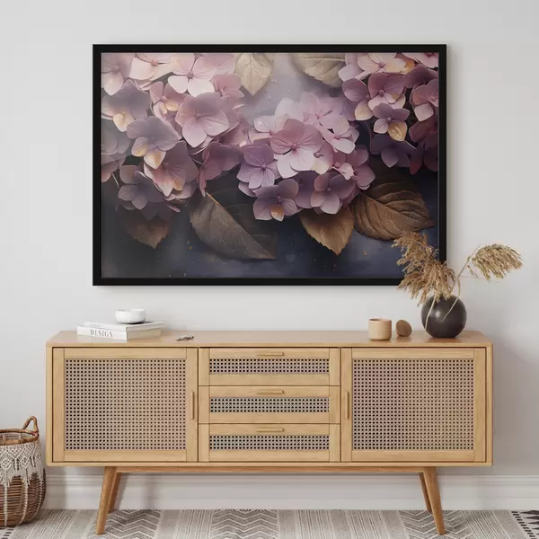 Poster Hortensii roz luxuriante pe un fundal întunecat în stil pictural Nr f45054