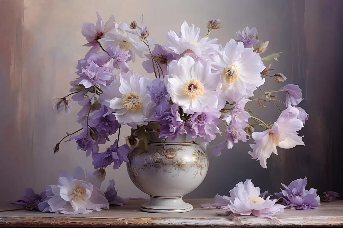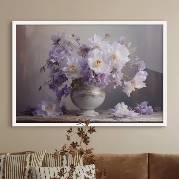 Poster Natură statică florală: flori albe și violet în stil artistic Nr f45058