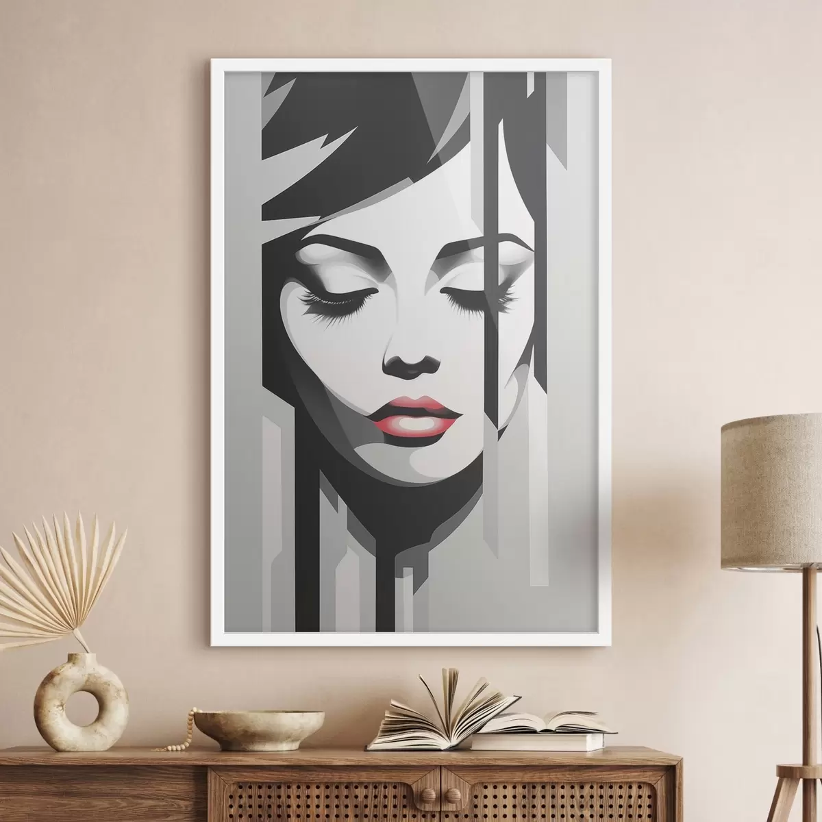 Poster Față albă și neagră cu ochii închiși Nr f45076