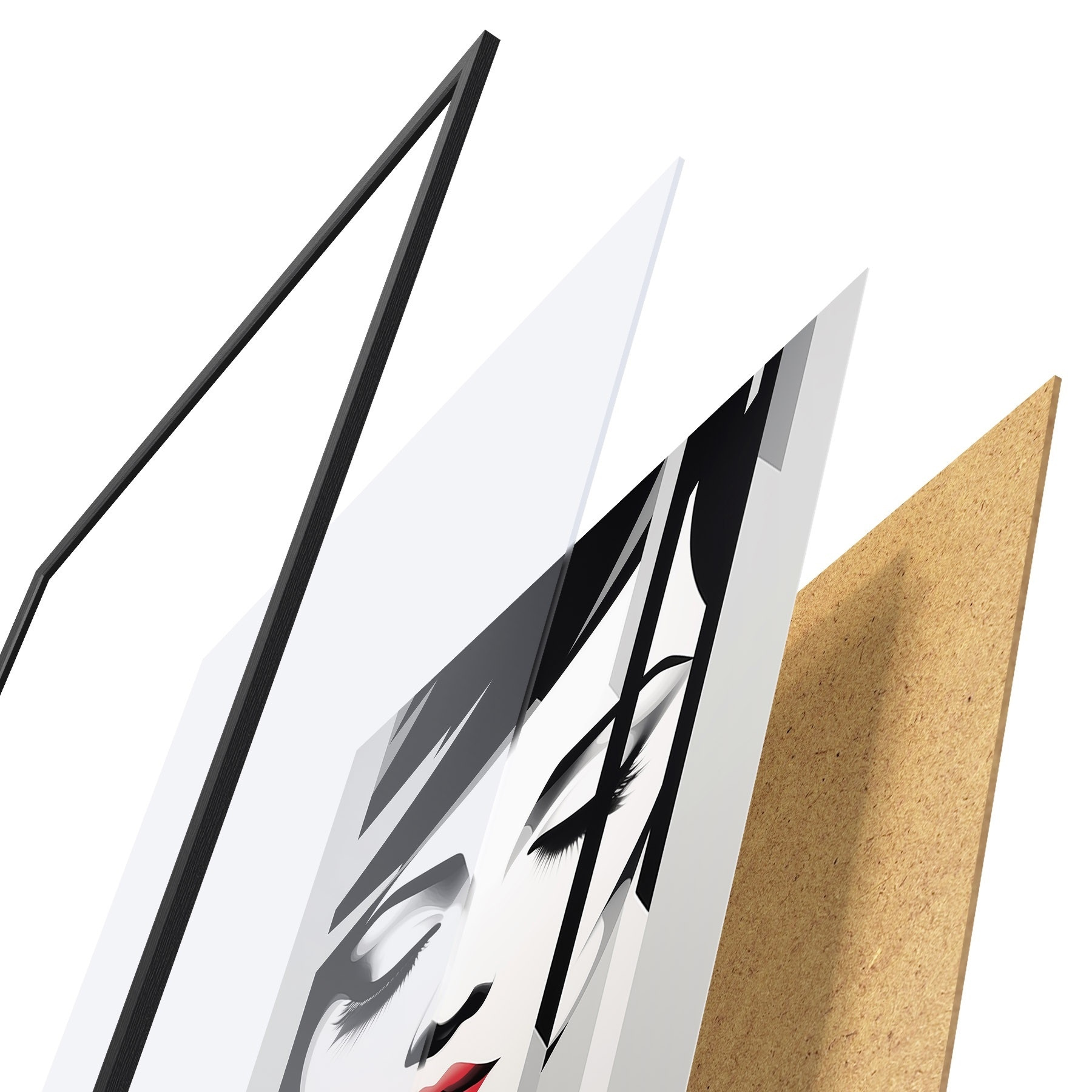 Afișul constă dintr-o ramă, plexiglas, imagine imprimată și suport din PAL. Posterul poate fi agățat imediat pe perete datorită suporturilor de pe spate.